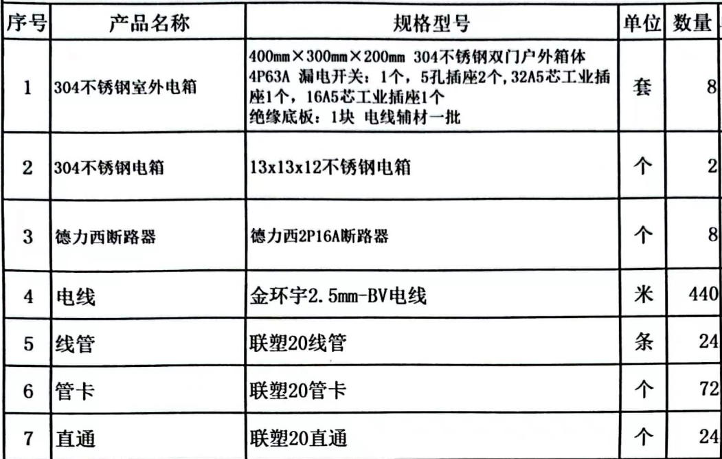 1、10仓11仓共8个傲间,各傲间加装一套电箱开关,合计8套;